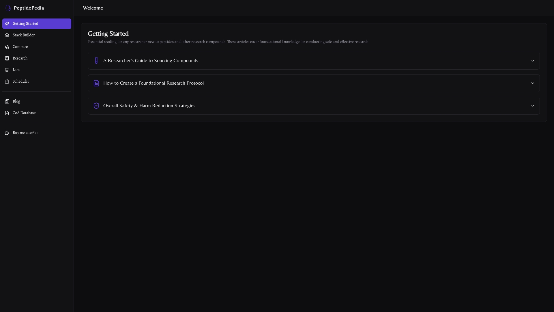 Educational focus with learning modules and articles: Structured modules help users build foundational and advanced peptide knowledge without hunting through scattered journals.
